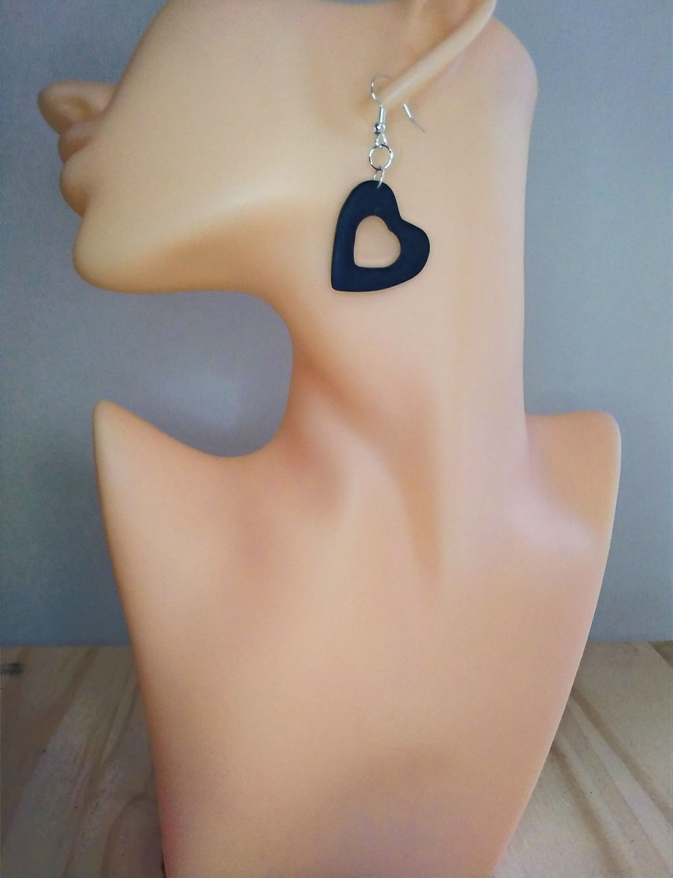 boucles d'oreilles rectangle et carré noir et bordeaux